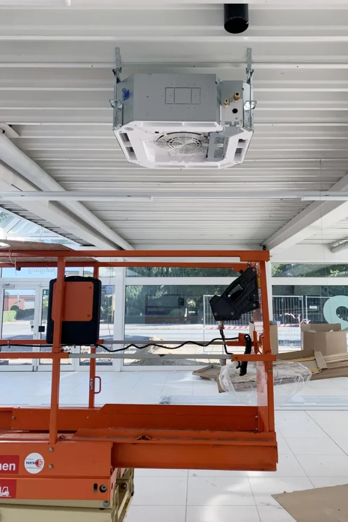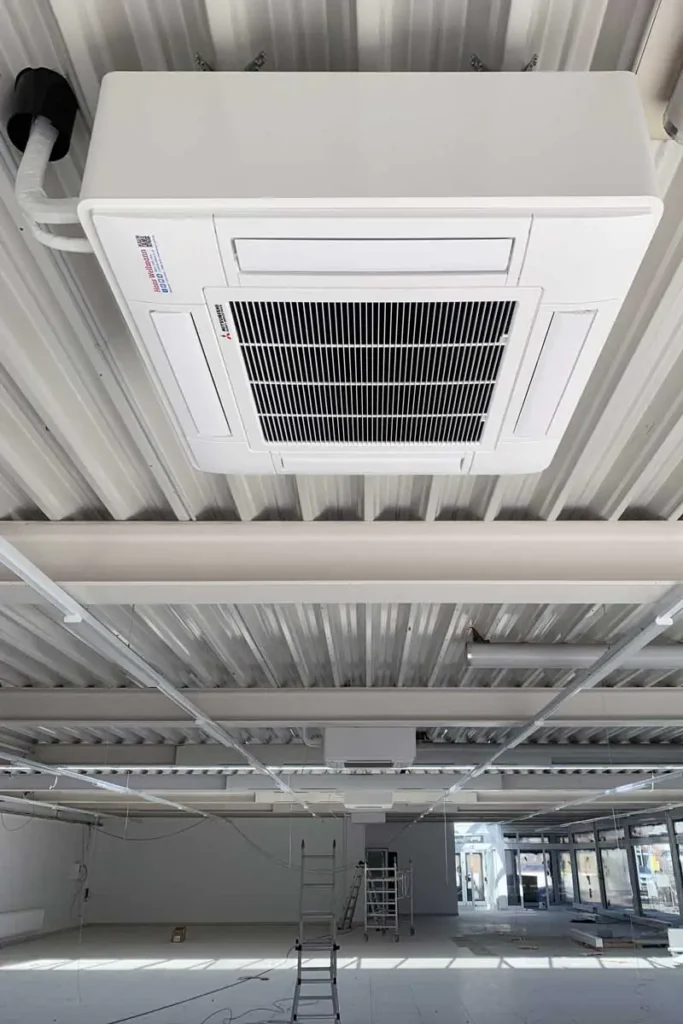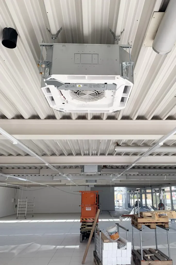 Wir planen und installieren Klimageräte für Autohäuser individuell nach den räumlichen Gegebenheiten. In diesem Fall wurden Innengeräte dezent in Verkaufs- und Beratungszonen platziert, während die Außengeräte unauffällig außerhalb des Sichtbereichs montiert wurden. Leitungen und Kabel haben wir sauber und wartungsfreundlich verlegt, damit das Erscheinungsbild des Autohauses nicht beeinträchtigt wird.